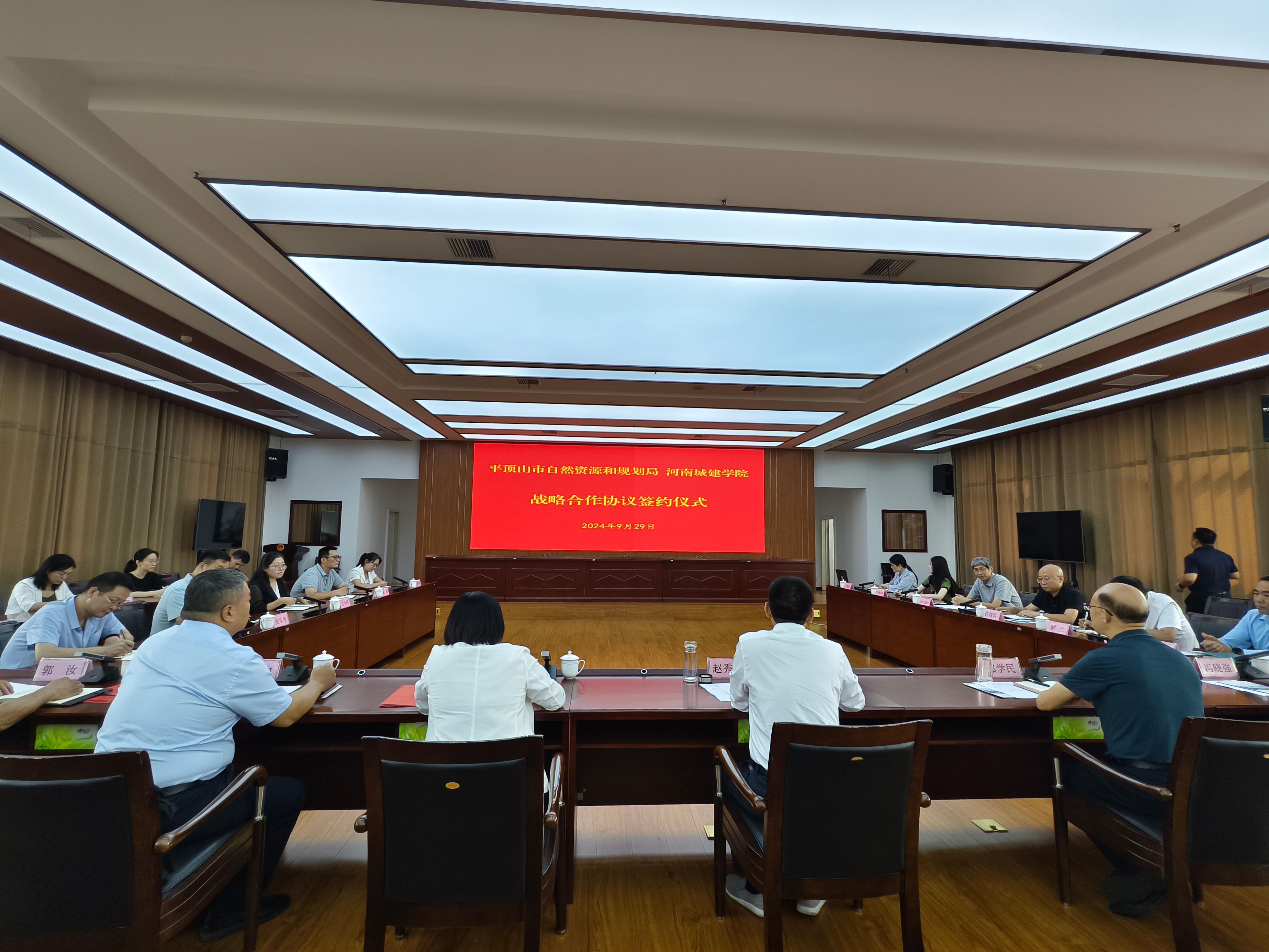 9月29日上午,河南城建学院与平顶山市自然资源和规划局战略合作协议签订仪式在平顶山市自然资源和规划局五楼会议室举行,我校副校长毛艳丽,平顶山市自然资源和规划局党组书记、局长赵秀红出席仪式。我校科研处、建筑与城市规划学院、生态环境治理研究院、测绘与城市空间信息学院、设计院等部门主要负责人及骨干教师,平顶山市自然资源和规划局副局长郭学民、总规划师冯晓强及市国土空间调查规划中心、市政交通科、大数据和科技科、国土空间规划科、详细规划科等部门及科室负责人参与了签约仪式。
